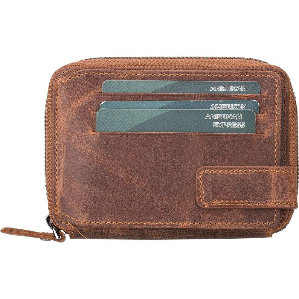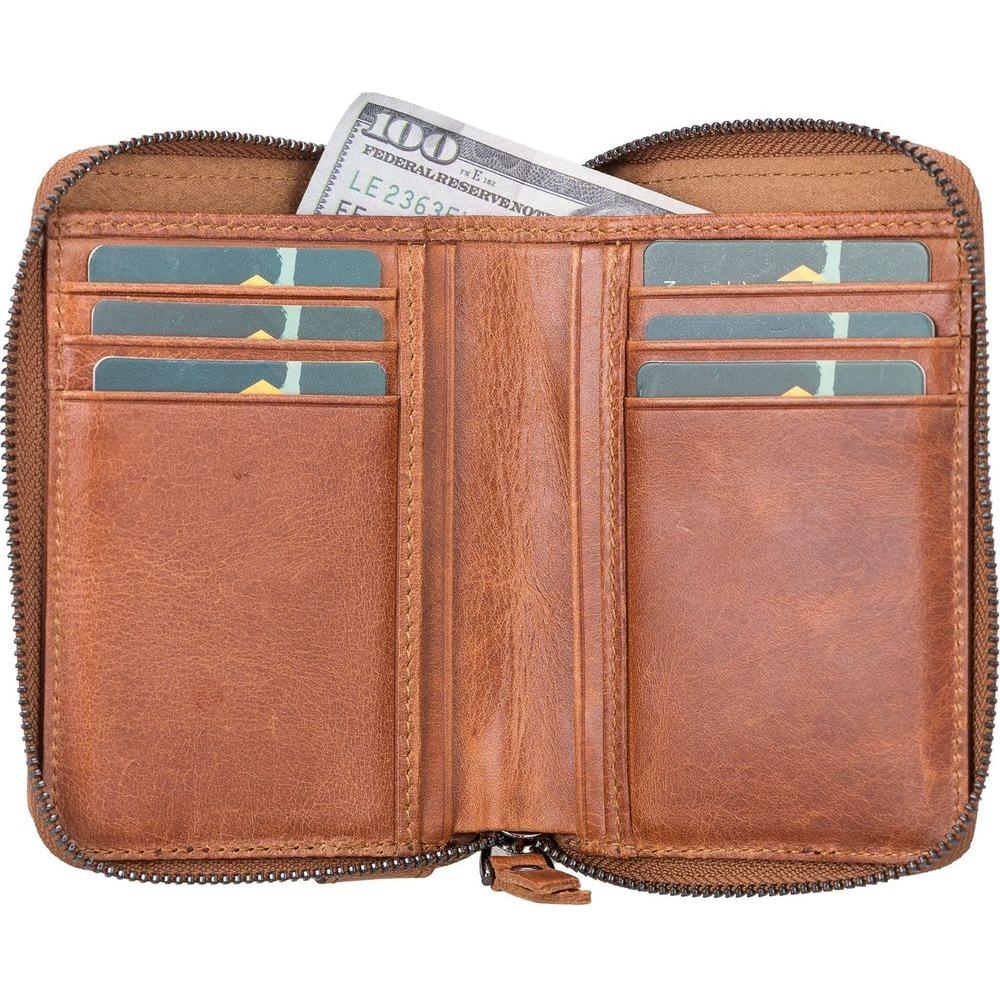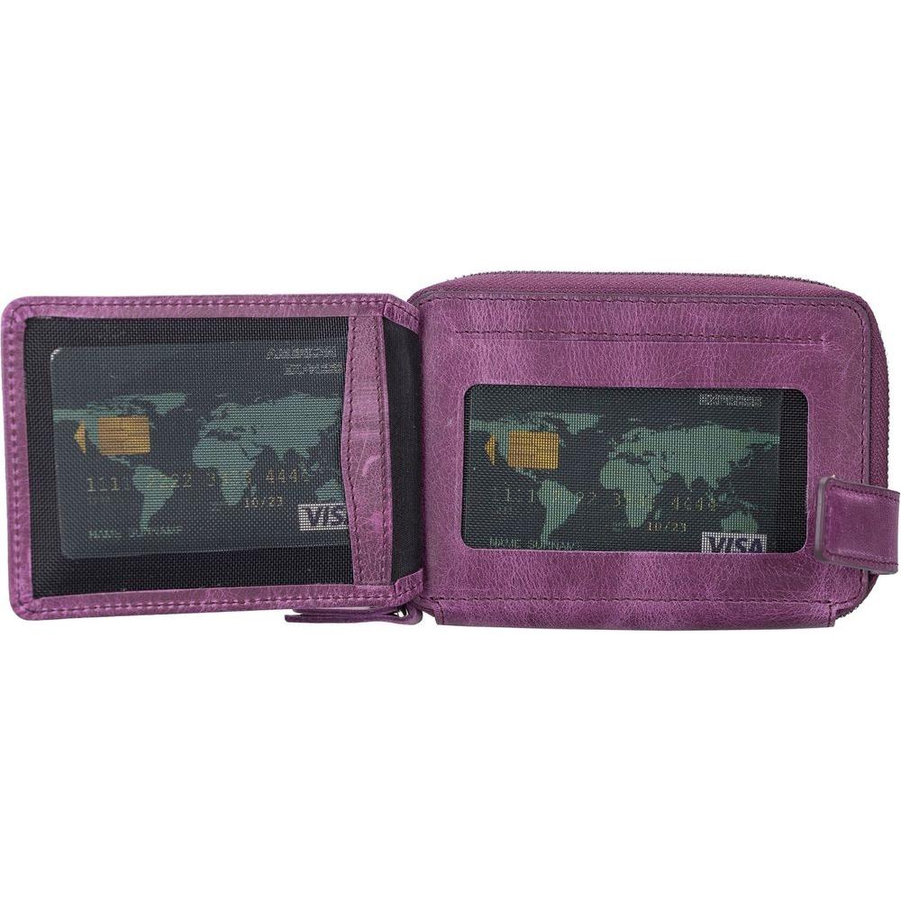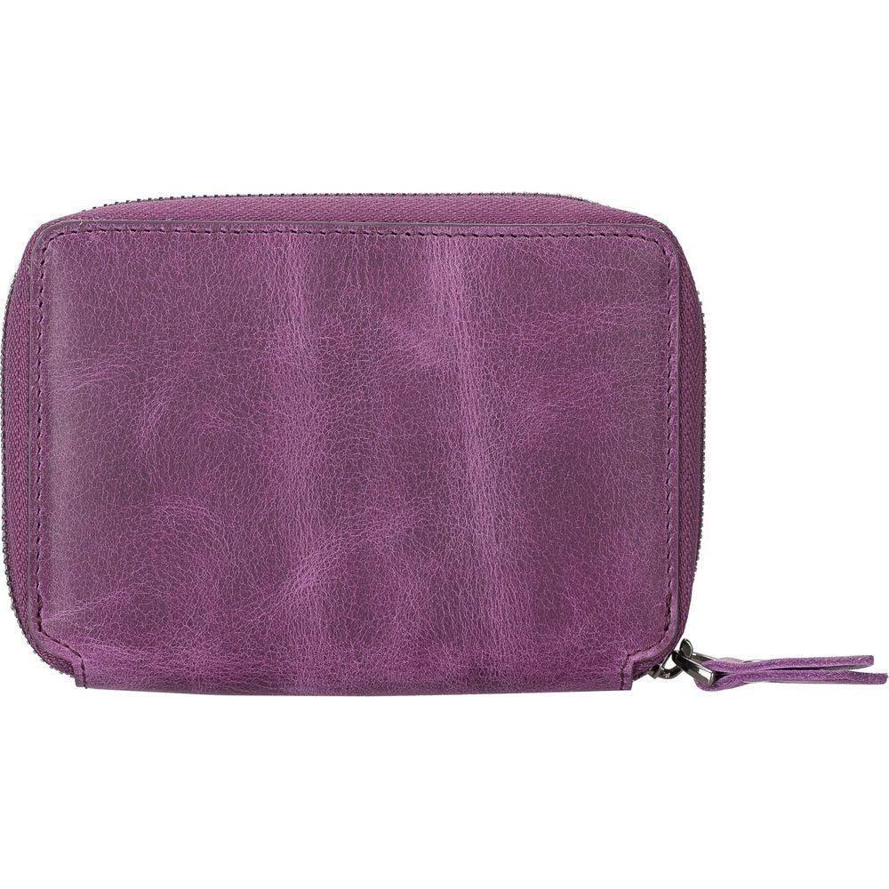 Introducing the Powell Handmade Unisex Leather Wallet with Zippered Compartment: Model Elegance 2021. A Luxurious Essential for Both Men and Women in Tan, Dark Brown, Black, or Purple.