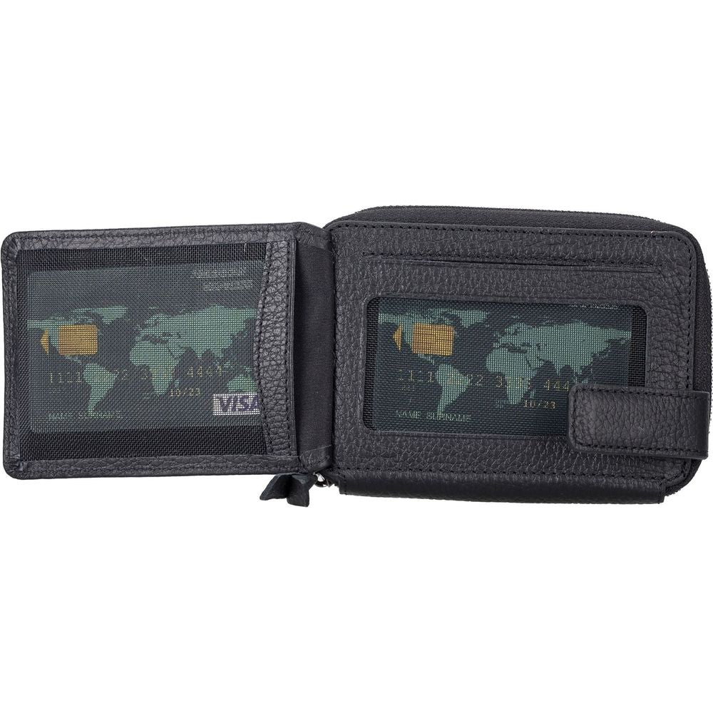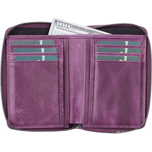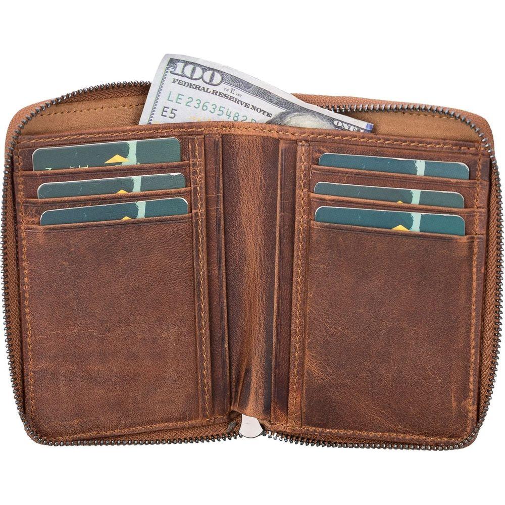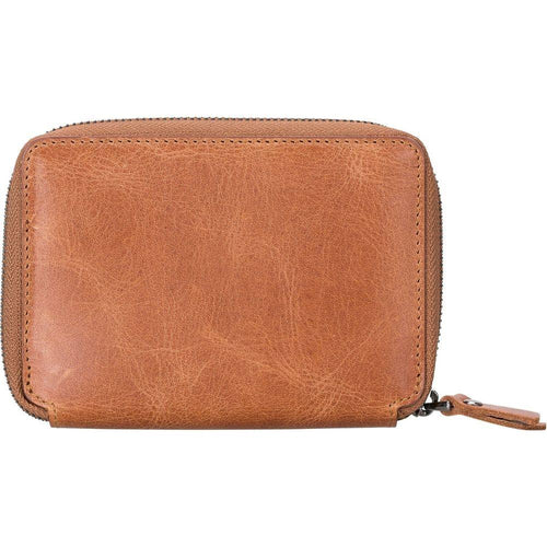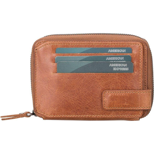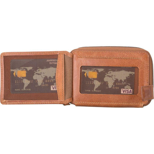 Introducing the Powell Handmade Unisex Leather Wallet with Zippered Compartment: Model Elegance 2021. A Luxurious Essential for Both Men and Women in Tan, Dark Brown, Black, or Purple.